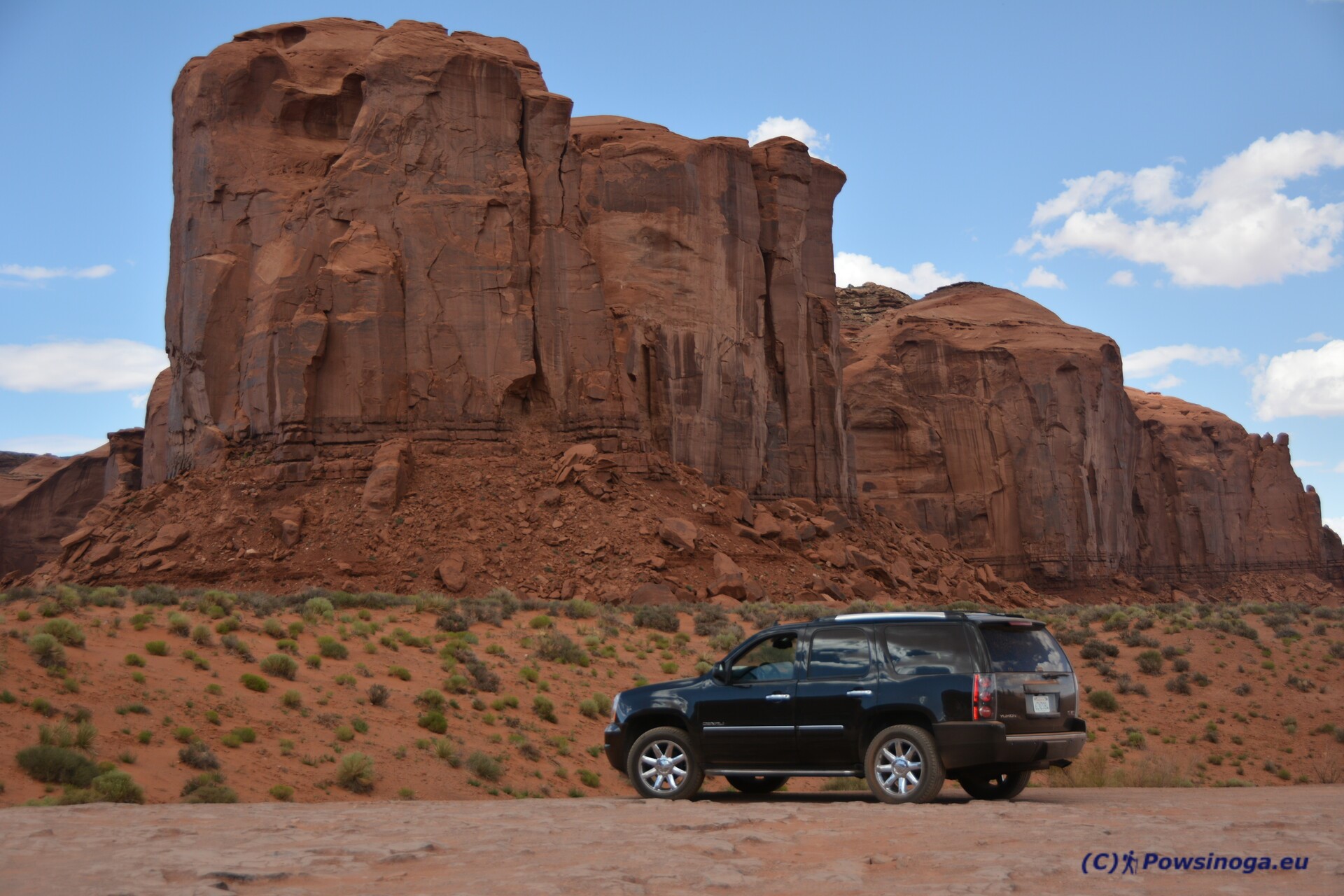 Pierwsze zderzenie z Ameryką nie było zbyt optymistyczne. Samochodu zarezerwowanego dla nas niestety nie było. Pomyślałem odruchowo „no to się zaczyna”… Urzędnik przepraszając prosił nas o chwile oczekiwania, obiecując, że „coś” zorganizuje. Wypytał nas o ilość osób, bagaży, cel podróży – i zapewnił, że znajdzie coś adekwatnego do naszych potrzeb. Po godzinie oczekiwania dostaliśmy „coś”, co spontanicznie nazwaliśmy czołgiem. Nazwa ta niewiele odbiegała od rzeczywistości – przynajmniej w zakresie rozmiarów i ilości spalanej benzyny. 6 litrowy silnik ma swoje wymagania. Yukon GMC – bo tak nazywał się ów SUV – to jeden z większych samochodów, jakie można wypożyczyć w zwykłej wypożyczalni dla przeciętnego śmiertelnika. 5 m długości, 2 m szerokości i tyle samo wysokości. Waga ponad 2,6 tony. Silnik ponad 320 KM, a spalanie ok 15 mil z galona czyli przeliczając na nasze – około 16 litrów/100 km. W baku mieściło się ok. 25 galonów (prawie 100 litrów!),czyli trzeba było tankować co około 500-550 km. Benzyna kosztowała mniej więcej połowę tego, co w Europie, czyli koszty podróży były takie – jakbyśmy jeździli po Starym Kontynencie normalnym autem palącym ok. 8 litrów na setkę. Podczas kolejnych 3 tygodni przekonaliśmy się, że w USA robią auta jeszcze większe i jeszcze cięższe. Przekonaliśmy się również, że ten model to najlepsze, co nam mogli dać, aby przejechać komfortowo i bezpiecznie 6000 km, które zrobiliśmy w ciągu następnych 20 dni. Wracając do porównań z Europą te 6 tysięcy to mniej więcej podróż z Rygi do Barcelony i z powrotem.