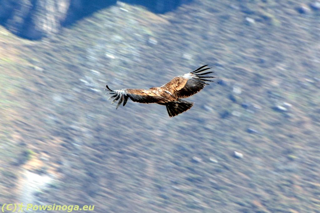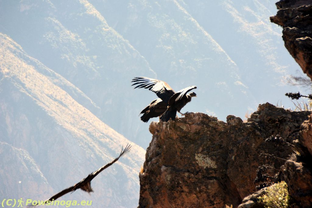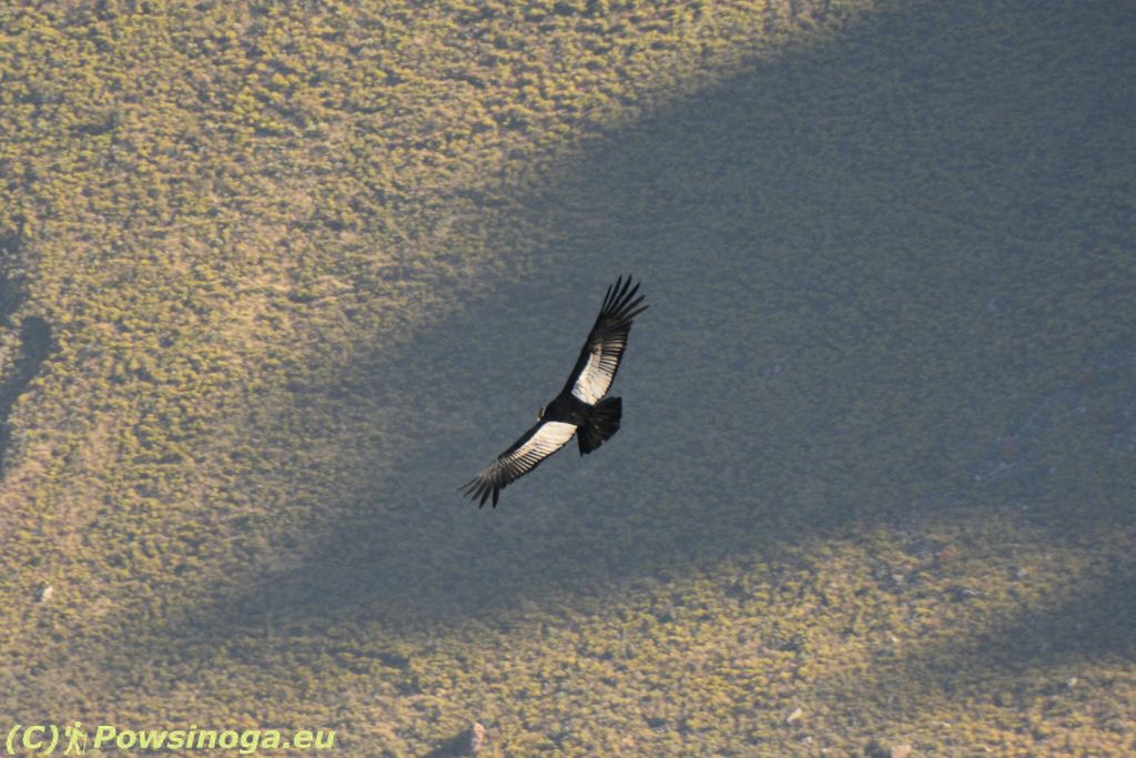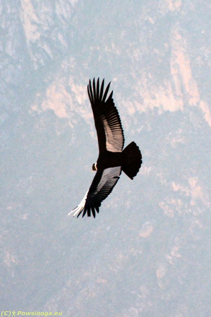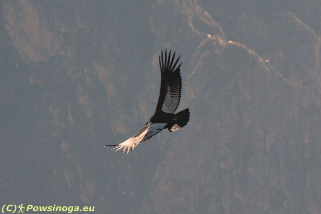 Cruz de Condor to miejsce na lewym brzegu kanionu rzeki Colca. Sam kanion w tym miejscu jeszcze nie jest bardzo głęboki – ma „zaledwie” nieco ponad 600 m głębokości. Kilkadziesiąt kilometrów na zachód ta głębokość to czasami ponad 3 km. Rzeka Colca wpada do oceanu, ale przy ujściu w porze suchej nie robi specjalnego wrażenia. Droga w punkcie obserwacyjnym Cruz de Condor zbliża się do krawędzi kanionu, który tutaj dosyć stromo opada w dół. Kondory do latania potrzebują prądów wstępujących, a te pojawiają się po kilku godzinach operacji słonecznej. Ptaki często są wynoszone przez prądy powietrzne niemal wprost pod obiektywy obserwujących je turystów. Czasami jest ich nawet kilkanaście. Tym razem też się pojawiły. Przez godzinę wylatywały coraz wyżej i wyżej patrolując okolicę. Są rzeczywiście imponujące. Rozpiętość skrzydeł może osiągać ponad 3 metry. Same ptaki ważą do 15 kg, przy czym samce są nieco większe od samic. Zakładają gniazda na występach skalnych, co ułatwia im „start” do szybowania. Osiągają pułap 5000 metrów. Mogą dożywać nawet 100 lat. Majestatycznie szybujące ptaki działały na nas hipnotycznie. Zafascynowani spektaklem na niebie nie zauważyliśmy jak szybko minęła godzina. Przed odjazdem mieliśmy jeszcze okazję skosztować soku z kaktusów, który jest lokalnym przysmakiem. Nieco kwaskowy, w kolorze niedojrzałego kiwi i podobny w smaku. Podobno bardzo zdrowy. Dla mnie jednak skutki tej degustacji miały się okazać fatalne.