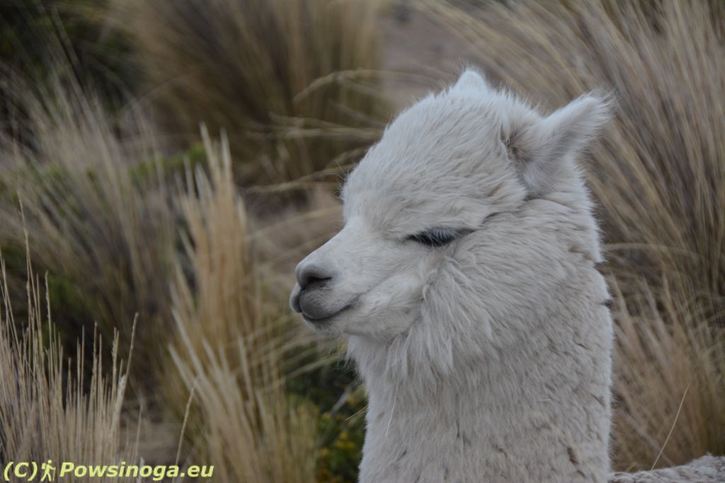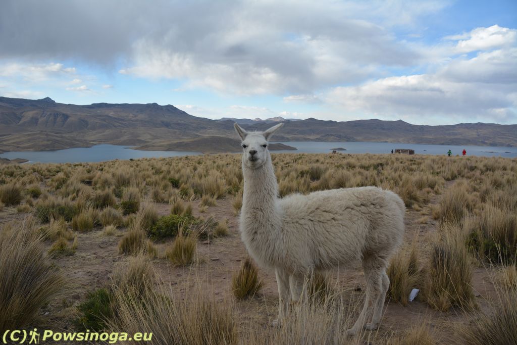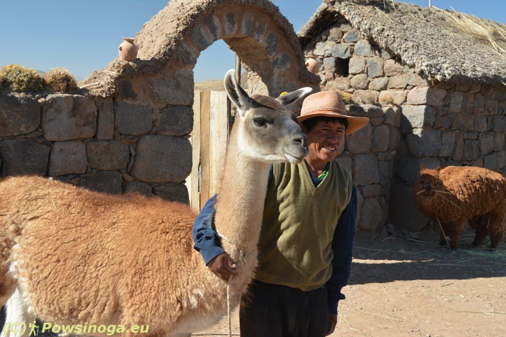 Droga powrotna wiodła najpierw do Chivay. Po drodze zatrzymaliśmy się w miejscowości Maca, gdzie oglądaliśmy między innymi uroczy kościółek barokowy Santa Ana z roku 1759, odrestaurowany po trzęsieniu ziemi, które zniszczyło go w 1991 roku. Z Chivay znowu przez przełęcz Patapampa w kierunku jeziora Titicaca. Podobnie, jak poprzedniego dnia, mijaliśmy stada dziko pasących się wikunii. Warto wspomnieć o tych zwierzętach z rodziny wielbłądowatych i ich krewniakach. Taksonomia gatunków zamieszkujących Amerykę Południową sprawiała do niedawna kłopot. Obecnie przyjmuje się, że pierwotnymi gatunkami zamieszkującymi ten kontynent były: wikunia (wigoń) i gwanako. Od nich pochodzą 2 gatunki udomowione: alpaka od wikunii i lama od gwanako. Nasza wizyta u miejscowego farmera, który hodował wikunie i gwanako poddaje w pewną wątpliwość poprawność tej systematyki, ale trzymajmy się oficjalnej wersji. Wikunie żyją dziko na terenach od 3500 m do 5750 m npm. Mają niezwykle delikatną sierść. Wyroby z wełny wikunii podlegają zakazowi wywozu z Peru. Osiągają astronomiczne ceny. W Limie widzieliśmy w firmowym sklepie męski płaszcz z wełny tego uroczego stworzenia. Płaszcz niebywale delikatny w dotyku, niemal jak aksamit, kosztował w przeliczeniu równowartość 30 tys. złotych. O wiele tańsze są wyroby z wełny lamy i alpaki. Szczególnie godne polecenia są wyroby z młodych alpak (tzw. baby alpaca). Delikatna wełna jest bardzo ciepła i miła w dotyku, a ceny wyrobów – nawet w firmowych sklepach, gdzie są wyższe 2-3 krotnie niż na targu – i tak są o wiele korzystniejsze niż w Polsce. Kupno na targu zawsze jest obarczone pewnym ryzykiem co do jakości towaru. Nie znam się na wełnie owcy i góralka spod Nowego Targu mogłaby mi wcisnąć sweter z waty, gdyby tylko chciała – więc wolałem się nie podejmować oceny jakości wyrobów z wełny alpaki sprzedawanych na targu w Chivay czy Pisac.